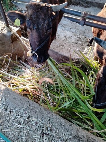 和牛の冬場のエサとしてサトウキビの葉っぱ